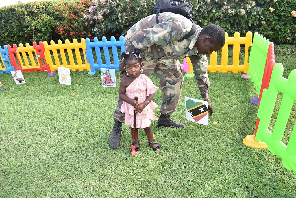 The festive atmosphere was palpable as children and their families gathered for an afternoon of joyous celebration. Traditional games, a cornerstone of St. Kitts and Nevis’ rich cultural heritage, filled the air with laughter and excitement. Guests enthusiastically participated in these cherished pastimes, fostering a sense of community and shared cultural pride.