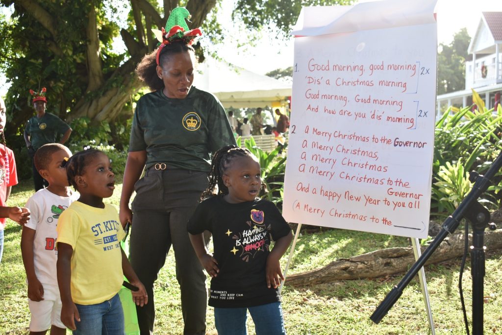 On Tuesday, December 17th, 2024, the vibrant spirit of Christmas filled Government House as Her Excellency Dame Marcella Liburd, Governor General of St. Kitts and Nevis, hosted her second annual “Kitti-Vision Jingle Mingle” for the children of soldiers serving in the St. Kitts and Nevis Defence Force (SKNDF).