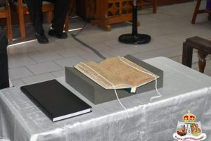 The ceremony with both forces saw the handing over of the newly restored St John’s Parish Register, at the St John’s Anglican Church in Fig Tree, Nevis. The register, after extensive restoration and digitizing work by the Borthwick Institute for Archives, the 1805 Club, and the Nevis Historical and Conservation Society, was returned to the Church and the people of Nevis.