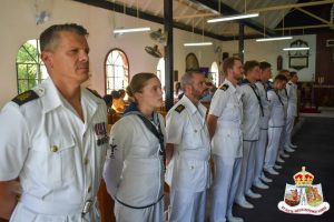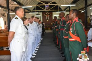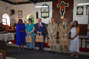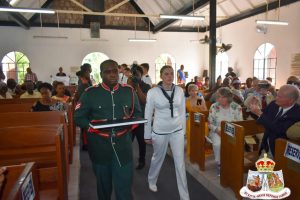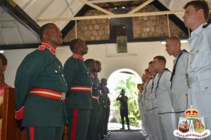 Squadron Leader Craig Pearson, the Deputy Defence Attaché to the British Army, along with Leftenant Nash of HMS Medway and a detachment of sailors, joined 2nd Leftenant Lakeem Crosse and a detachment of soldiers from the St. Kitts-Nevis Defence Force to jointly conduct the historic handover ceremony at the church.